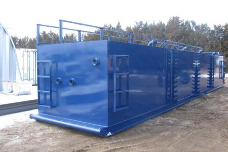 Modifications were made to several of these pre-exisiting tanks for an oil field client. We added diffusers, valving, pipe storage, railing, walkways, and other user friendly changes before sending it off to paint.